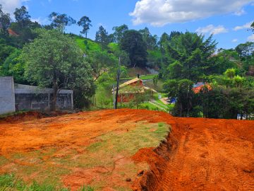 Terreno com 1.379m² de área, parte terraplanado e murado, local alto com maravilhosa vista, excelente localização em bairro de fácil acesso, próximo à linha de ônibus, com rede de energia, rede de telefone fixo, internet por fibra óptica, iluminação pública.